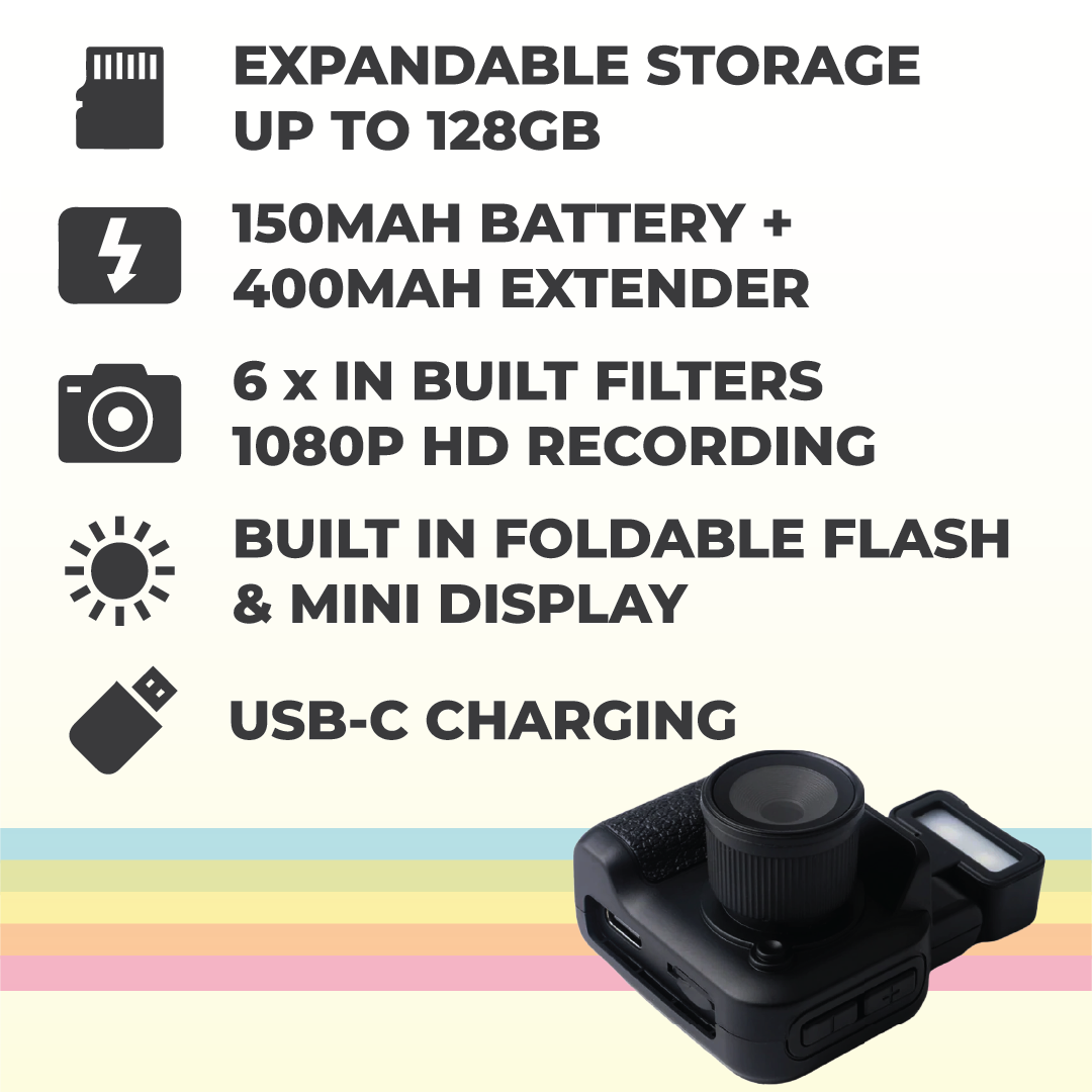 There’s something magical about being present — and nothing kills the vibe faster than pulling out your phone every time you want to capture a memory. That’s where our Mini Retro Cam comes in. With its Y2K-inspired filters and old-school charm, it’s the perfect way to snap memories without the distractions.